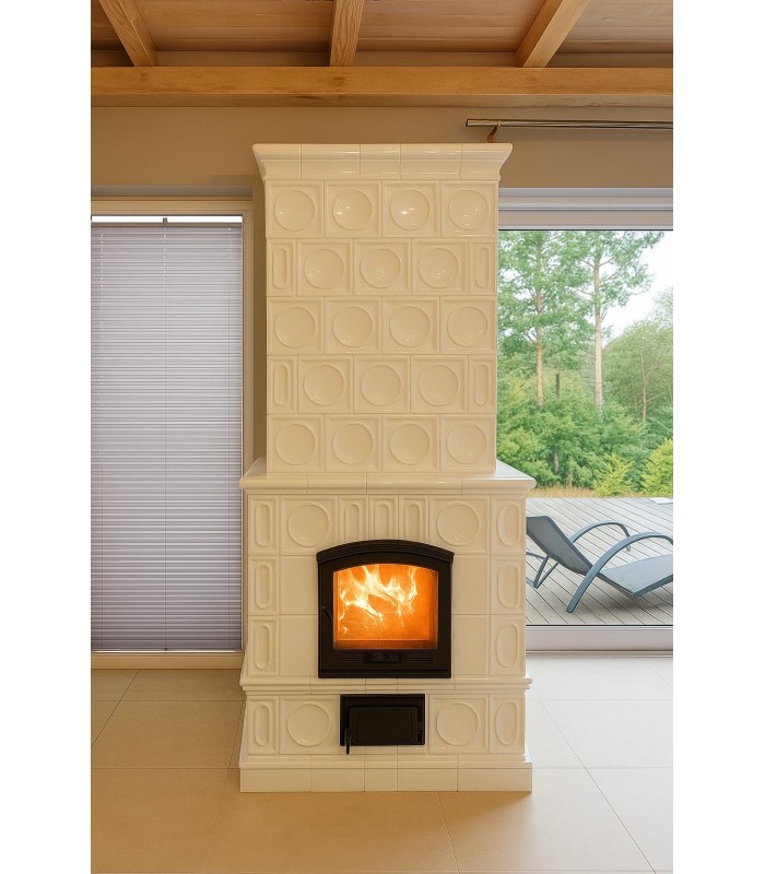 Piec kaflowy zwężany nr 36 to elegancki i funkcjonalny model wykonany z wysokiej jakości kafli STALOWA WOLA. Wyposażony w drzwiczki z szybą typu ARKA, łączy w sobie tradycyjny styl z nowoczesną wygodą użytkowania. Dzięki zastosowaniu naturalnych kafli ceramicznych piec doskonale akumuluje ciepło i oddaje je stopniowo nawet przez całą dobę po jednym rozpaleniu.