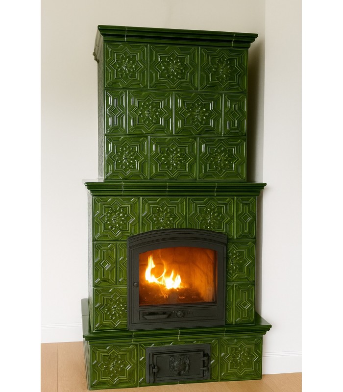 Piec kaflowy zwężany z kafli STALOWA WOLA w kolorze zieleni butelkowej - 42